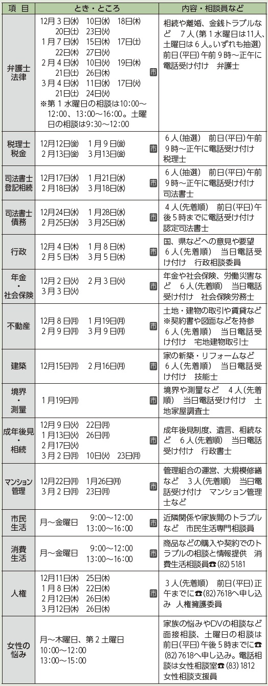 各相談とも、祝・休日はお休みします。