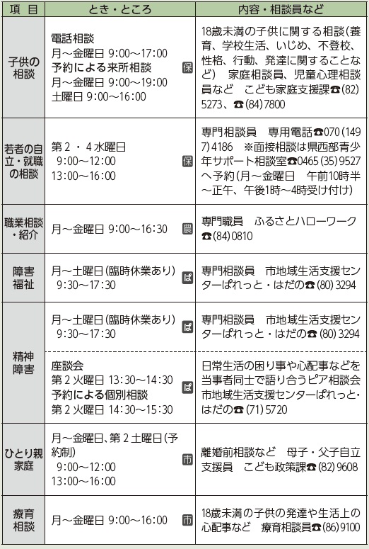 [ぱ]=市地域生活支援センターぱれっと・はだの(本町2-7-25)