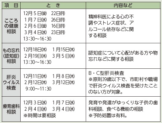 ※時間のないものは午後1時~4時。当日の電話受け付けは午前8時半~正午。