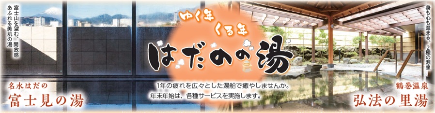 1年の疲れを広々とした湯船で癒やしませんか。年末年始は、各種サービスを実施します。